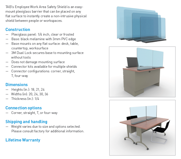 Easy-Mount plexiglass barrier that can be placed on any flat surface to instantly create a non-intrusive physical shield between people or workspaces.