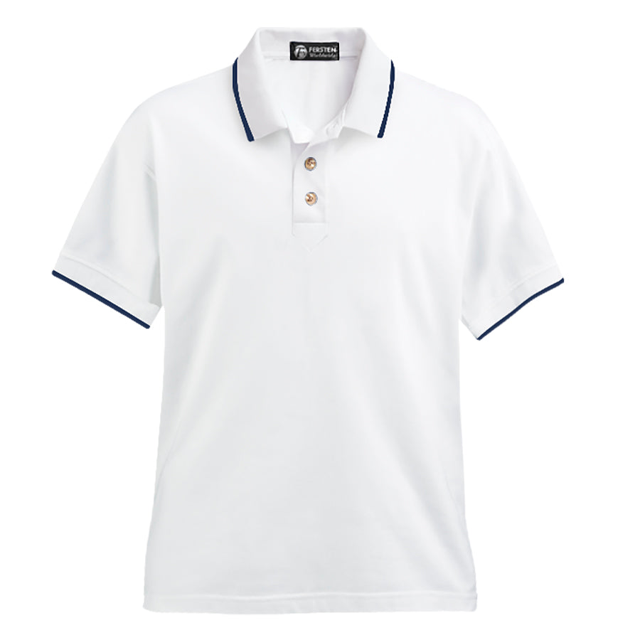 Men's Classic Ringspun Combed Cotton Piqué Polo with Single Contrasting Stripe
